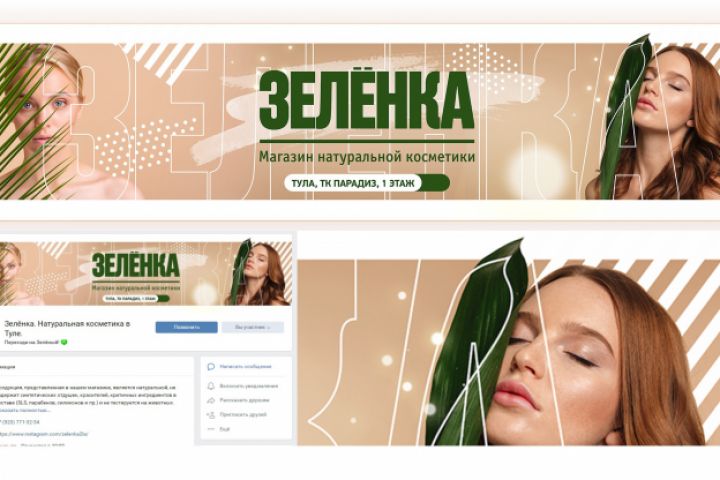 Дизайн обложки для оформления группы Вконтакте для магазина натуральной косметики ЗЕЛЕНКА