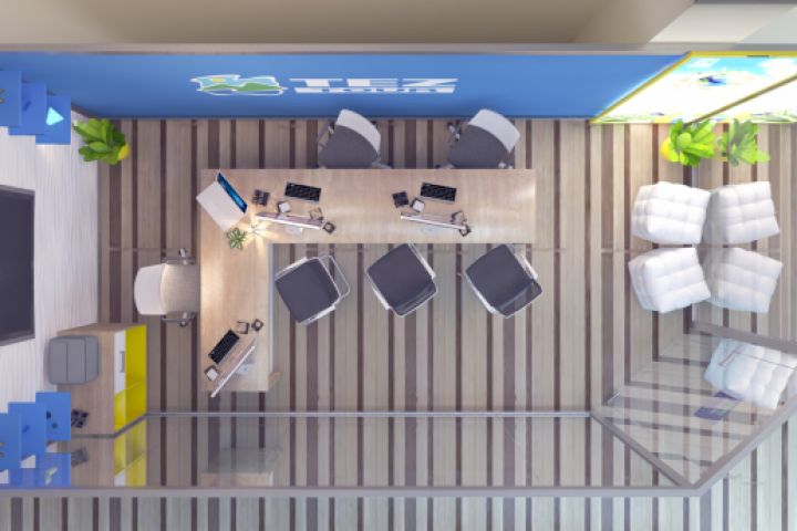 Дизайн стеклянного бакса для центра продаж TEZ Tour