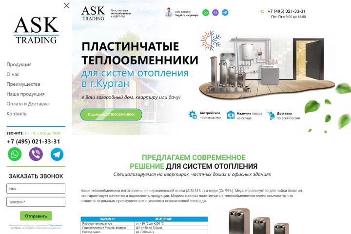 Сайт - Landing - ПЛАСТИНЧАТЫЕ ТЕПЛООБМЕННИКИ г.Москва Чтобы сделать заказ напишите мне, буду рад сотрудничеству! +7 (922) 670-12-85 (Whatsapp, Viber) e-mail: websait.pro@mail.ru