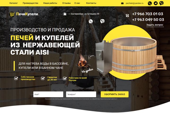 Сайт - Landing - Производство купелей и печей г.Екатеренбург Чтобы сделать заказ напишите мне, буду рад сотрудничеству! +7 (922) 670-12-85 (Whatsapp, Viber) e-mail: websait.pro@mail.ru