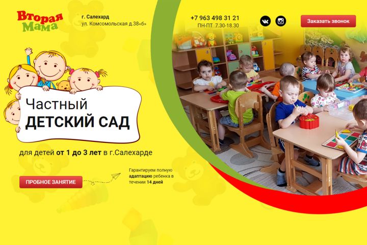 Сайт - Landing - Частный детский садик г.Салехард Чтобы сделать заказ напишите мне, буду рад сотрудничеству! +7 (922) 670-12-85 (Whatsapp, Viber) e-mail: websait.pro@mail.ru