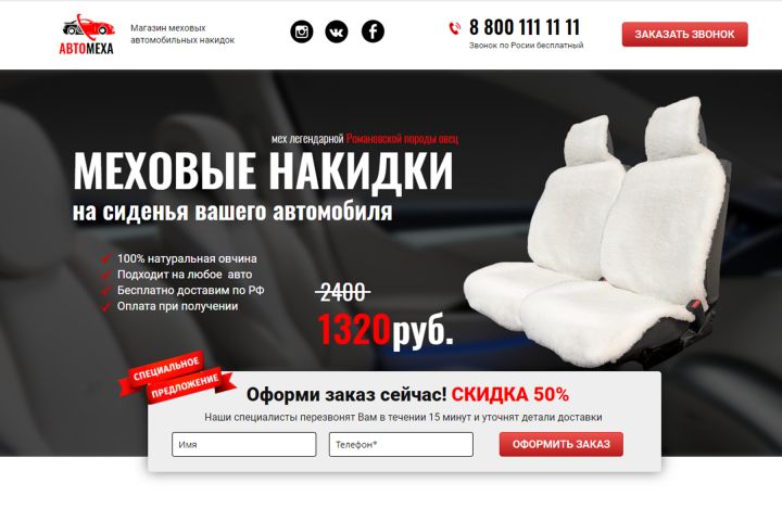 Сайт - Landing - Меховые автонакидки Чтобы сделать заказ напишите мне, буду рад сотрудничеству! +7 (922) 670-12-85 (Whatsapp, Viber) e-mail: websait.pro@mail.ru