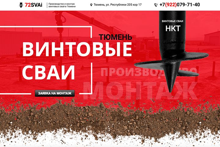 Сайт - Landing - Монтаж винтовых свай г.Тюмень Чтобы сделать заказ напишите мне, буду рад сотрудничеству! +7 (922) 670-12-85 (Whatsapp, Viber) e-mail: websait.pro@mail.ru