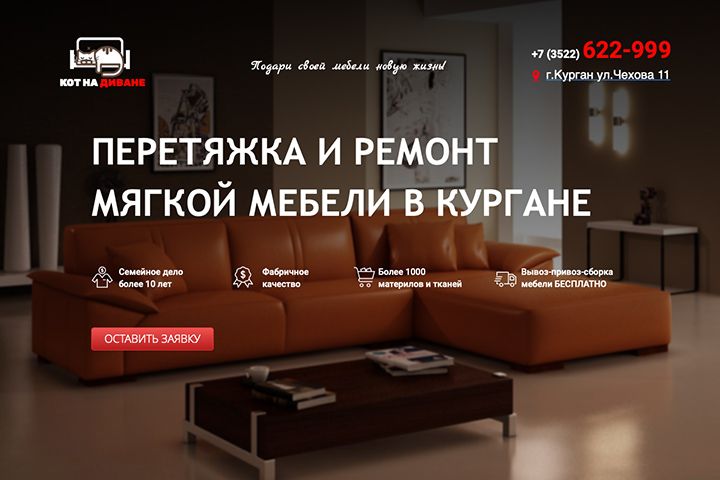 Сайт - Landing - Перетяжка и ремонт мебели г.Курган Чтобы сделать заказ напишите мне, буду рад сотрудничеству! +7 (922) 670-12-85 (Whatsapp, Viber) e-mail: var_roma@mail.ru
