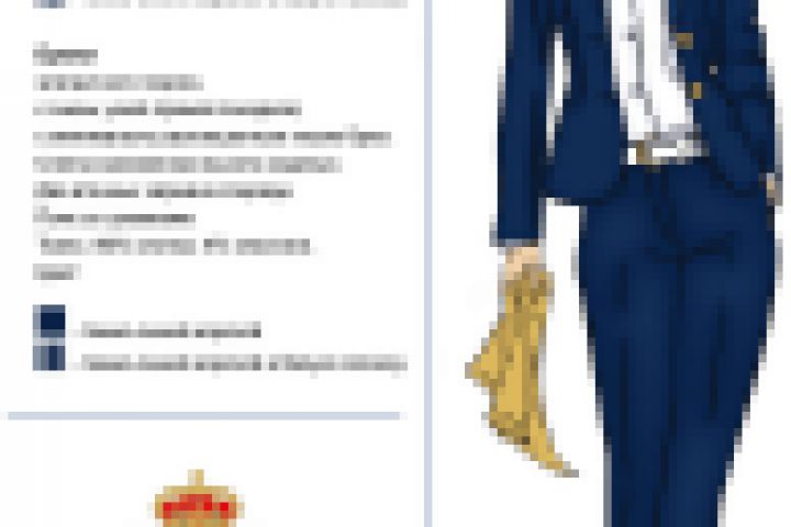 Эскиз женского брючного костюма с галстуком. Стиль "navy".