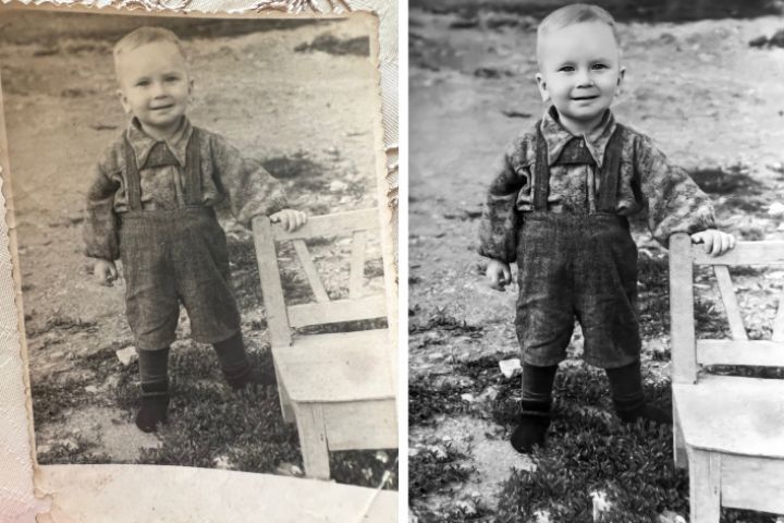 Реставрация фото мальчика (до и после обработки)