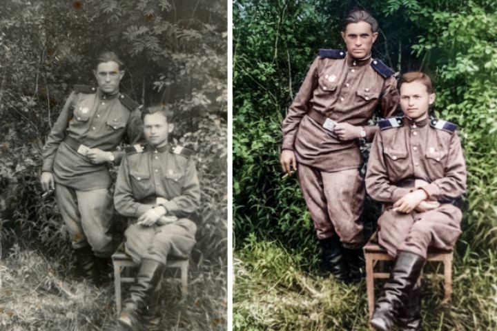 Восстановление и колоризация фото солдат (до и после обработки)