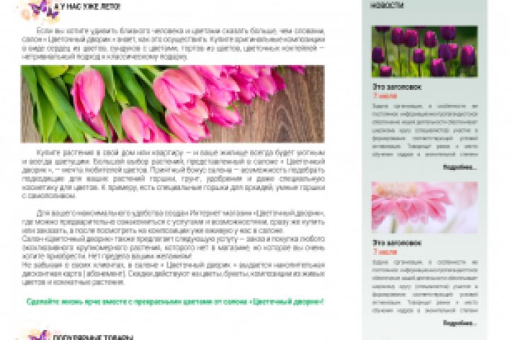 Вариант дизайна интернет-магазина цветов и аксессуаров.