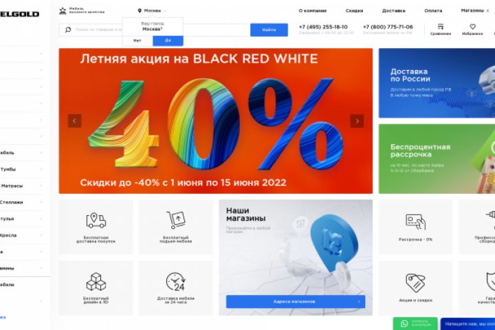 Верстка + программирование с огромным функционалом. Крупнейший интернет магазин мебели, 100 000+ товаров. 1С Битрикс: управление сайтом