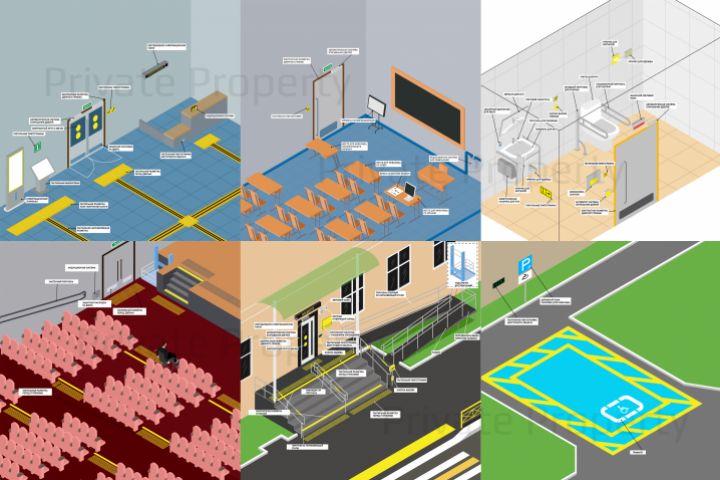 Иллюстрации помещений и прилегающих территорий, оборудованных для МГН Выполнено в Adobe Illustrator