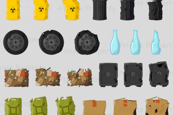 Игровые предметы для будущей мобильной игры про свалку Сделано в Adobe Photoshop и Adobe Illustrator