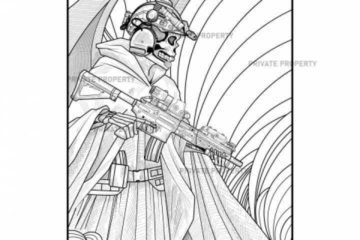 Арт в графичном стиле для принта на одежду со страйкбольной тематикой.