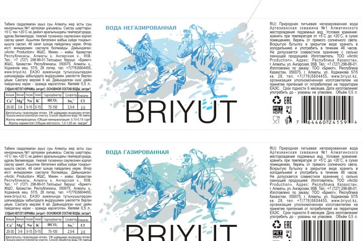 Разработка дизайна этикетки в рамках одной концепции на минеральную воду "Бриут"