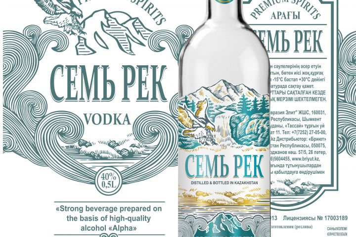Разработка дизайна водочной этикетки "Семь рек" + общая коробка