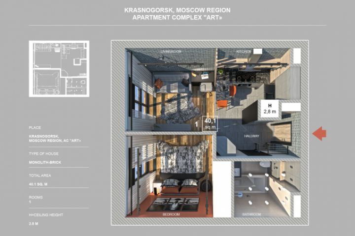 Дизайн однокомнатной квартиры-студии. Красногорск.