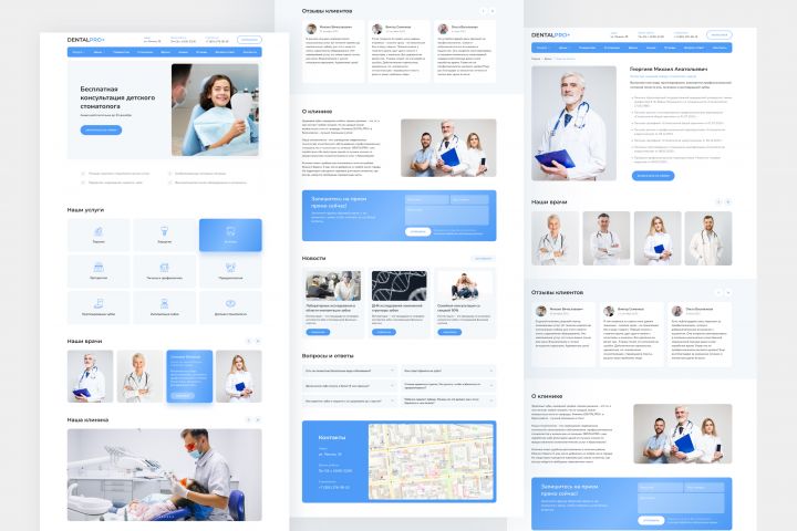 Клиника "DENTALPRO+" специализируется на оказании стоматологических услуг для всей семьи. Перед началом работы я провела с заказчиком интервью, чтобы лучше понять его потребности и ожидания. В результате мы пришли к выводу, что сайт должен быть: