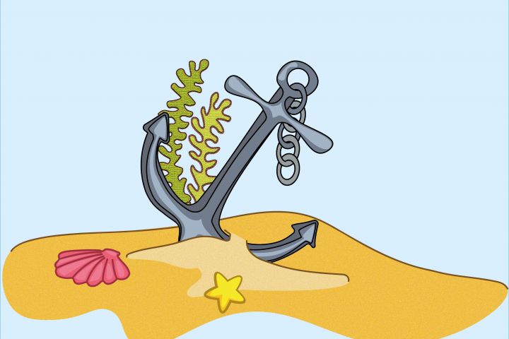 Необходимо было разработать иллюстрацию следующего характера: якорь на дне морском