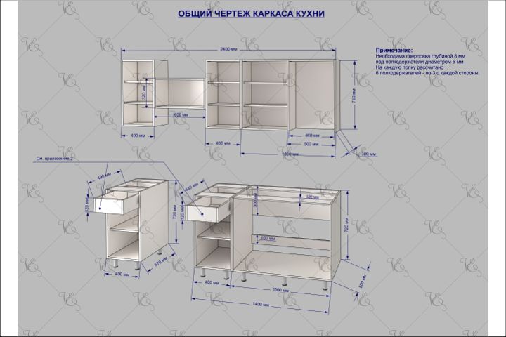 Общий чертеж каркаса кухни для подготовки карты распила.