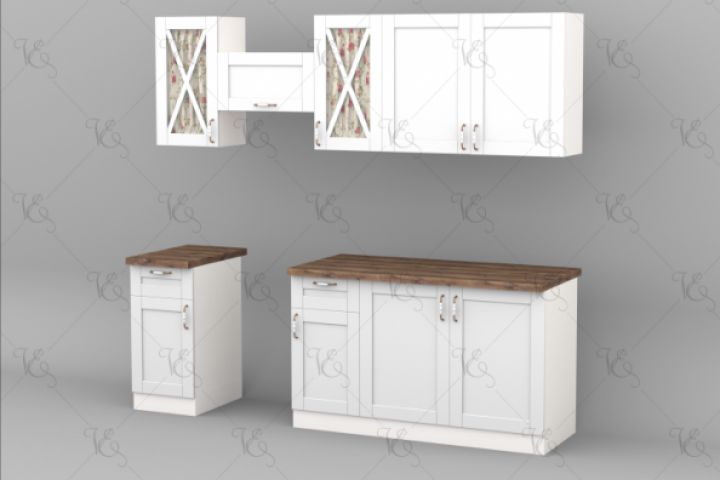 Замер помещения заказчика, проектирование и 3d-моделирование кухни в стиле "Прованс" с учетом пожеланий клиента, полный подбор фурнитуры, техники и сантехники, предоставление сметы и чертежей для распила ЛДСП, предоставление чертежей для сборщиков.