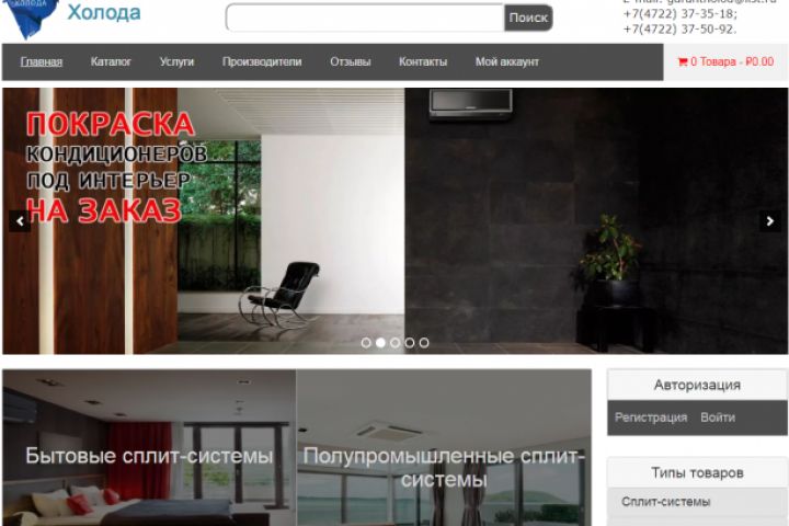Это интернет-магазин. Компания занимается продажей и установкой холодильного оборудования. В ассортимент входят бытовые кондиционеры и полупромышленный холод.
