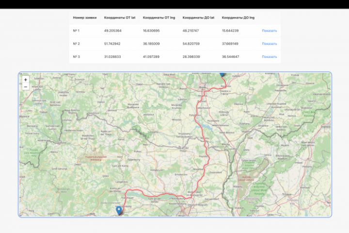 Приложение написано полностью на ReactJS и библиотеке Leaflet. Есть возможность прокладывать маршруты по указанным координатам.