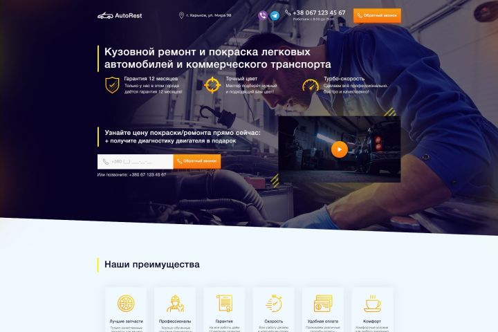 Была задача создать яркий, стильный и современный лендинг для автосервиса