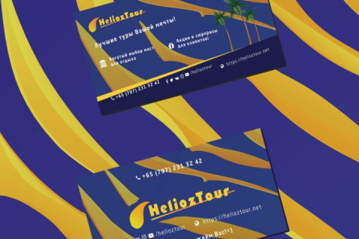 Визитка для туристической фирмы, предоставляющей готовые туры. Визитная карточка оформлена в соответствии со стилистикой сайта и в таком же дизайне. Цель её - дать возможность оставить контакты посетителям, которые смогут обратиться за услугами вновь, либо привести новых клиентов. С этой целью на ней изображена вся необходимая контактная информация. Макет оформлен в цветовой схеме CMYK и вполне готов к распечатке.