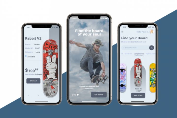 Отрисовка мобильно приложения для онлайн-магазина скейт-бордов.