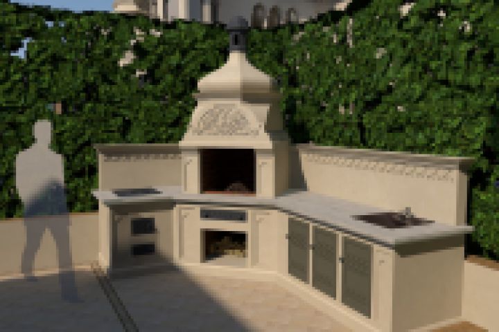Печь-барбекю в восточном стиле из камня аглай, мрамора и металла
