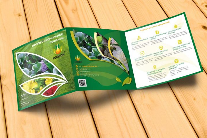 Разработала буклет для компании, занимающейся реализацией минеральных садовых удобрений. Формат: квадрат, гармошка.