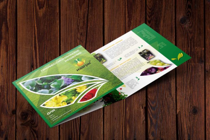 Разработала буклет для организации, осуществляющей разработку и реализацию садовых минеральных удобрений "ИЗАГРИ" в стиле "ЭКО", "ОРГАНИКА".