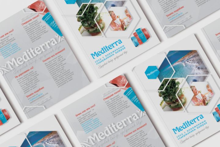 Разработан дизайн листовки А5 для компании, занимающейся производством и реализацией соли "Mediterra".