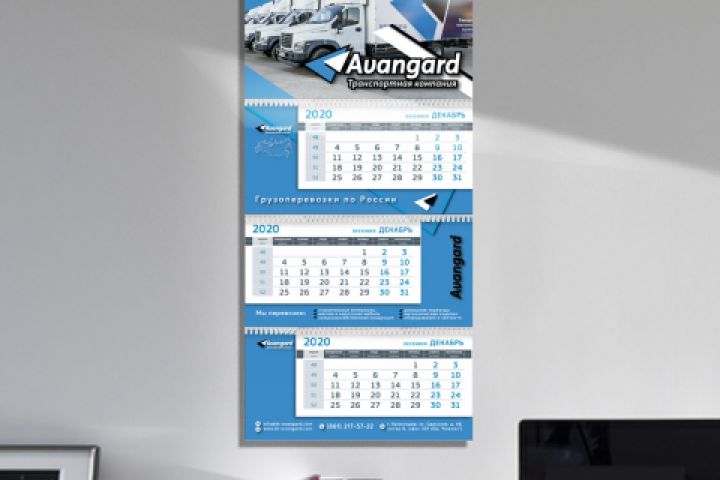 календарь для компании "AVANGARD", занимающейся грузоперевозками