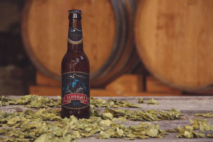 Задача: разработать яркую стилизованную этикетку с надписью "Горный Эль".