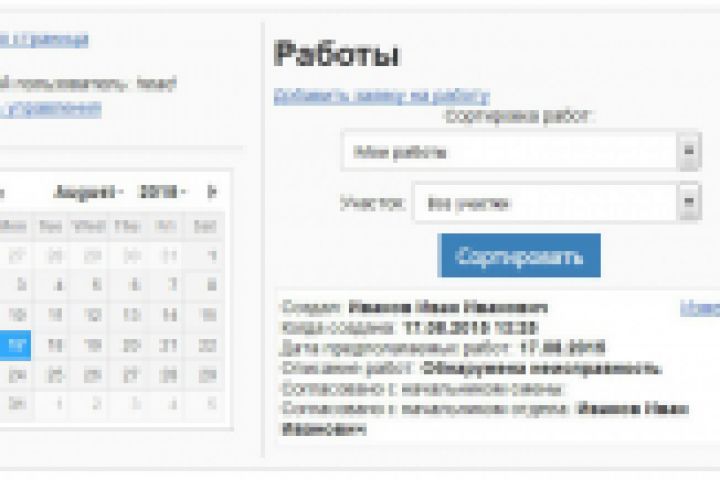 Создание заявки на работу, устранения дефектов, выявленных нарушениях.