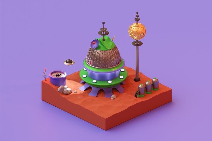 Марсианская база (Low-Poly моделирование) 3D программа: Blender