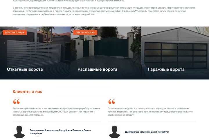 Разработка корпоративного сайта для компании занимающейся производством и установкой ворот для дома, дачи, промышленных предприятий и складских помещений.