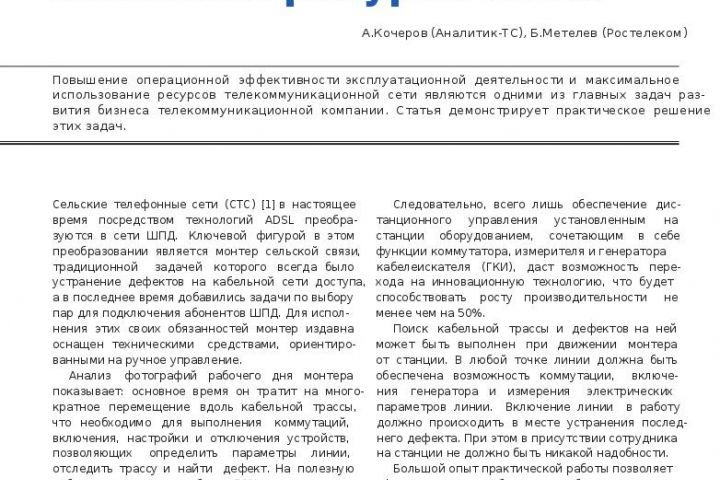 Повышение операционной эффективности эксплуатационной деятельности и максимальное использование ресурсов телекоммуникационной сети являются одними из главных задач развития бизнеса телекоммуникационной компании. Статья демонстрирует практическое решение этих задач.