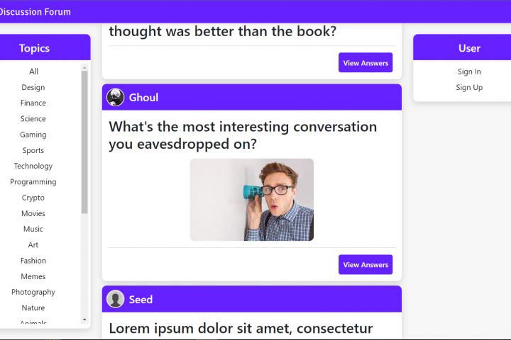 Простой форум, созданный с помощью ASP.NET Core и использованием паттерна MVC, где пользователи могут задавать вопросы на различные темы и писать на них ответы.