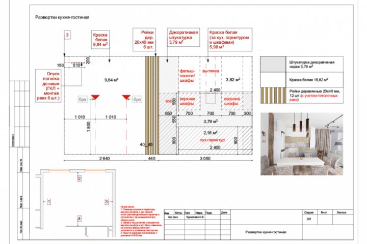 Коллажная подача дизайна кухни-гостиной