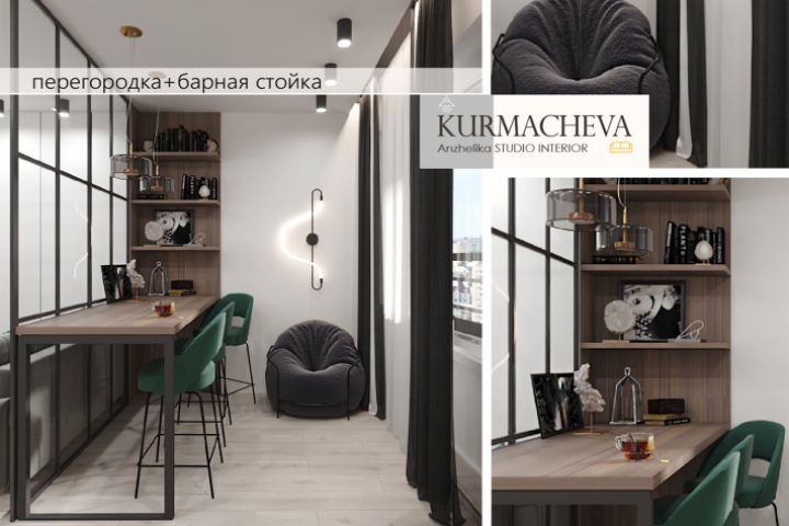 Коллажная подача дизайна кухни-гостиной