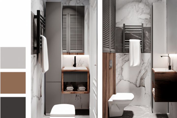 Дизайн двух С/У: гостевой и хозяйский в одном стиле