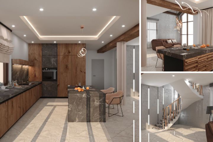 3D-визуализация дома со вторым светом (кухня-гостиная)