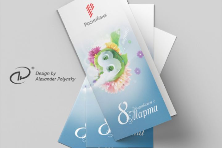 Открытка «8 марта» ver.3 для ОАО «Росинбанк» Формат: 200х210(h)mm