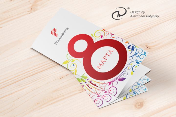 Открытка «8 марта» ver.2 для ОАО «Росинбанк» Формат: 200х210(h)mm