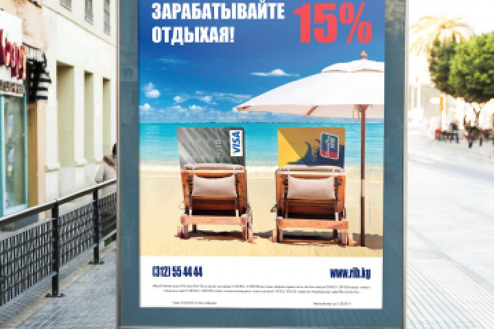 Плакат «Зарабатывайте отдыхая! Visa 15%» для ОАО «Росинбанк»