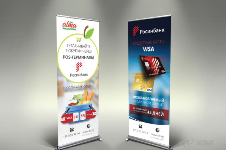 Роллап: размер 0,8х2(h)m 1. Скидки в гипермаркете «Алма» при оплате картами Visa или UnionPay от ОАО «Росинбанк». 2. Кредитные карты ОАО «Росинбанк».