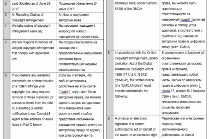 Перевод с английского на русский- Политика компании в отношении извещений о защите авторских прав