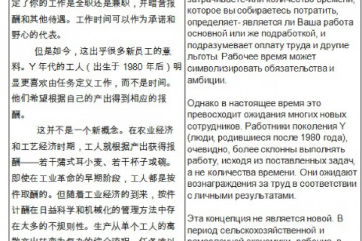 Перевод с китайского на русский- общая тематика(о рабочем времени)