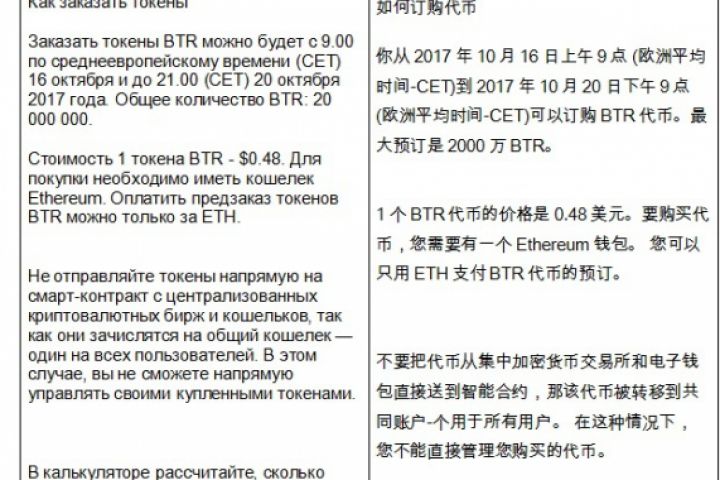 Перевод с русского на китайский по тематике "токены" (криптовалюты)